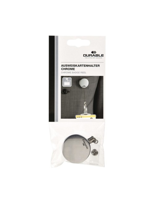 * Afrolmechanisme in chrome om badges aan te bevestigen. * Aan kledij te bevestigen dankzij de metalen klem op de achterzijde. * Ook geschikt voor zwaarde voorwerpen of veiligheidspashouders. * Geschikt voor alle DURABLE badges die voorzien zijn van een clipuitspring. * Lengte van het touw: 80 cm. * Diameter van het afrolmechanisme: 4cm.