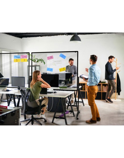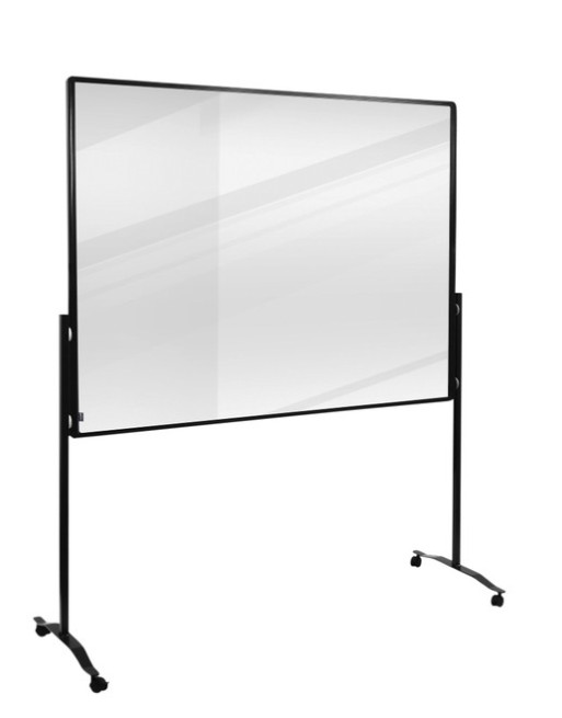 * Hoogwaardige scheidingswand met een doorzichtig plexiglazen oppervlak. * Dikte van plexiglas: 5 mm. * Aluminium frame met matte coating, voet en poten van staal met matte coating. * In twee standen in hoogte verstelbaar. * Verticale en horizontale bordmontage. * Set van 4 vergrendelbare zwenkwielen en haken voor flipover inbegrepen. * Minimale hoogte van het totale product (verticaal opgesteld): 196 cm. * Maximale hoogte van het totale product (verticaal opgesteld): 226 cm. * Maximale hoogte van het totale product (horizontaal opgesteld): 196 cm. * Afmetingen van bord: H 150 x B 120 cm. * Een eenvoudige manier om bureaus en ruimtes van elkaar te scheiden om een veilige en hygiënische werkomgeving te creëren. * Bevordert samenwerking op een veilige afstand. * Omdat het product doorzichtig is, blijft de ruimte het licht en kunnen collega's met elkaar blijven communiceren. * Gebruik het plexiglas flexibel door te visualiseren met Magic-Chart Notes, of voeg een papierblok toe om er een flipover van te maken. * Glad, makkelijk schoon te maken oppervlak. * Aantrekkelijk, lichtgewicht en mobiel ontwerp. * Zonder gereedschap snel en eenvoudig te monteren. * Poten stevig aan het bord verbonden voor extra stabiliteit. * Diverse borden kunnen snel aan elkaar worden bevestigd.