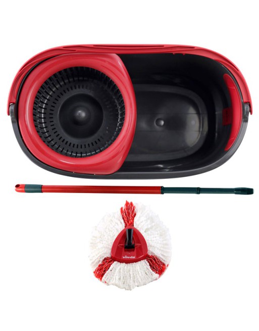 * Het schoonmaaksysteem Easy Wring en Clean Turbo van Vileda bestaat uit een mop, een steel en een pedaalemmer. * De set is gemaakt om verschillende soorten vloeren effectief en moeiteloos schoon te maken. * Door de pedaal in de emmer hoef je amper kracht te zetten en niet te bukken om de mop goed uit te wringen. * Daarnaast bevat de bijgeleverde emmer een schenktuit en een handvat in de lengterichting om de emmer moeiteloos te kunnen legen. * Door de maataanduiding in de emmer doe je nooit teveel water in de emmer. * De lengte van de steel is 132cm. * De kop is vervaardigd uit microvezels die bestaan uit miljoenen minuscule synthetische vezels. * Wanneer u de vloer bevochtigt, maken al die minuscule vezels het vuil los en nemen ze het mechanisch op. * Voor een schone en hygiënische vloer.