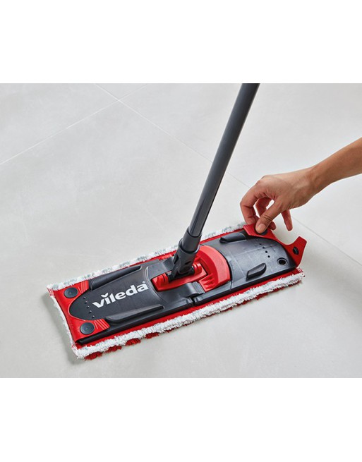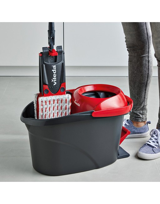 * De nieuwe UltraMat Turbo biedt de perfecte oplossing voor een moeiteloze schoonmaak zonder de handen nat te maken. * De set bevat een vloerwisser met bijhorende microvezelhoes 2-in-1 Power en een pedaalemmer met uitwringsysteem. * Voor doeltreffend en moeiteloos uitwringen van de hoes. * Dankzij het voetpedaal hoeft u zich niet meer te bukken om de hoes uit te wringen. * Dankzij het pedaalsysteem kan de hoes worden uitgewrongen tot de gewenste vochtigheidsgraad. * Hoe meer op de pedaal wordt geduwd, hoe meer de hoes wordt uitgewrongen. * De emmer is gemakkelijk te ledigen dankzij zijn handgreep en geïntegreerde schenktuit. * De steellengte is 130cm.