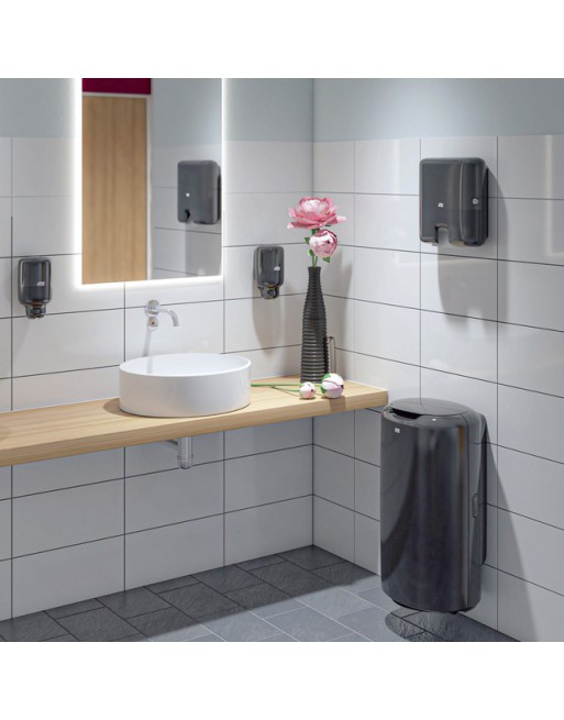 * De Tork Jumbo Toiletpapier Dispenser uit de Elevation-lijn is geschikt voor drukbezochte locaties. * De extra hoge capaciteit bespaart onderhoudstijd en verzekert dat er altijd papier beschikbaar is. * Tork Elevation-dispensers hebben een functioneel, modern ontwerp dat een blijvende indruk maakt op uw bezoekers. * Slimme restrolfunctie zorgt ervoor dat de rol volledig wordt opgebruikt en de hoeveelheid afval tot een minimum beperkt blijft. * Dankzij de rem draaien rollen niet door en wordt het verbruik verminderd. * Doorzichtig venster geeft aan wanneer het tijd is om te vullen. * Met slot. * Muurbevestiging (schroeven bijgeleverd). * Afmetingen dispenser 437x360x133nn.