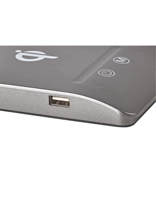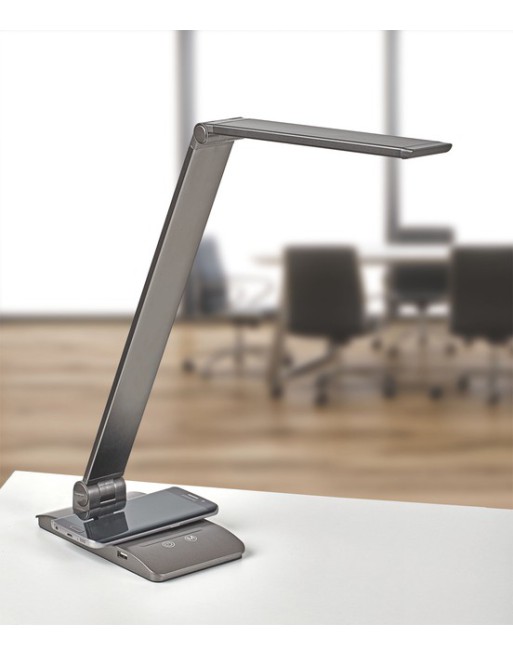 * Instelbare lichtsterkte en kleur, van warm wit tot daglicht. * 2 opties tot opladen. * Voet voorzien van draadloos oplaadstation voor smartphones (QI-gecertificeerd). * USB-poort in de voet voor opladen (5V, maximaal 500 ma, USB-type: A). * Enorm zuinig in verbruik door moderne LED-techniek. * Gemakkelijk dimbaar in 4 stappen. * Kleur van het licht op 3 niveau's instelbaar. * Geschikt als oplaadstation voor smartphones en smartwatches. * Qi gecertificeerd, type class 0, versie 1.2.4. * Geen kabelchaos. * Voorzien van 48 LED's: 24x warm wit (3000 Kelvin), 24x daglicht (6500 Kelvin). * Armatuur is voorzien van ingebouwde LED's (niet vervangbaar). * Levensduur LED's: 20.000 uur. * Energieklasse: A+. * Zeer laag energieverbruik met ca. 8 watt. * Gemeten energieverbruik is 8 kWh/1000h. * Lichtsterkte: 1480 Lux bij 35 cm afstand, 460 Lumen. * Armlengte: 38 cm. * Hoogte lamp tijdens normaal gebruik: 41 cm. * Lampkop: 23x5 cm. * Voorzien van een stabiele, verzwaarde voet: 18x11 cm, beschermde onderkant. * Touchbediening op de voet voor de gewenste lichtinstelling.