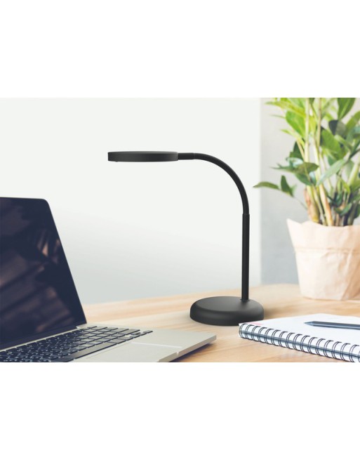 * Vrolijke tafellamp in de trendy kleur: zwart. * Stoere uitstraling door het matte oppervlak. * Energiezuinig door de moderne LED-techniek. * Energie-efficiëntie: A+. * Geschikt voor kleine werkoppervlakken. * Hoge lichtsterkte. * Ruimtebesparend door de compacte vorm. * 16 leds (3000 Kelvin). * Warm, wit licht. * Lamp bevat ingebouwde LED-lichtjes (Niet vervangbaar). * Levensduur: 20.000 uur. * Energieverbruik: 7kWh/1000h. * Lichtsterkte: 1880 Lux op 33 cm afstand. * Lichtstroom: 480 Lumen. * Armlengte: 35,8 cm (in normale werkstand: 34 cm). * Armatuurkop:Ø ca. 11,8 cm (draai -en kantelbaar). * Stabiele voet:Ø 13,7 cm. *Schakelaar aan armatuurkop voor comfortabel aan- en uitschakelen.