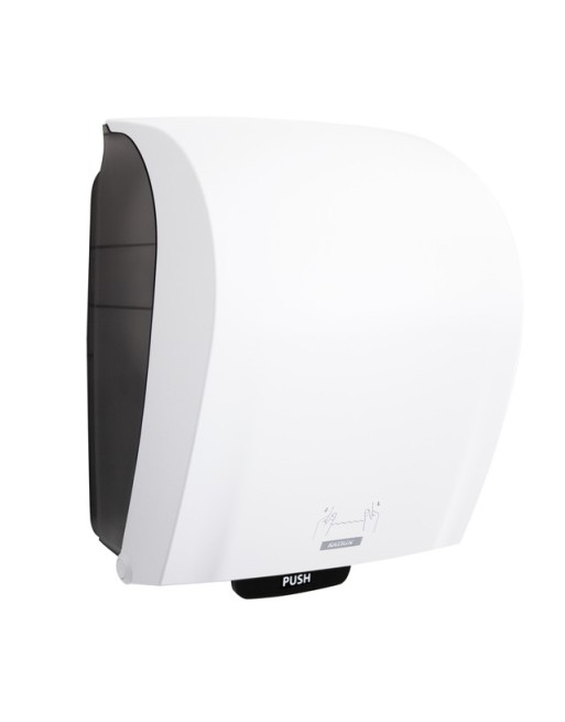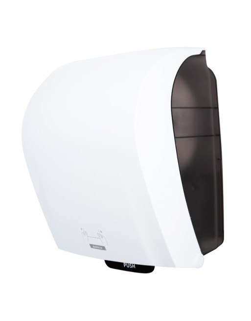 * Katrin System handdoekdispenser XL. * Als het papier niet zichtbaar is, is er een gebruiksvriendelijke PUSH-knop voor papierinvoer. * Gecontroleerd verbruik en minimale trekweerstand. * Hoge capaciteit 1058 vel per Katrin XL rol. * 1-laags papier. * Het papierverbruik is gemakkelijk te controleren dankzij de transparante zijpanelen. * Ontworpen om te functioneren: snijeenheid met lage trekkracht en aangepast ontwerp van de snijeenheid tegen vastlopen. * Afmetingen 280x400x228mm.
