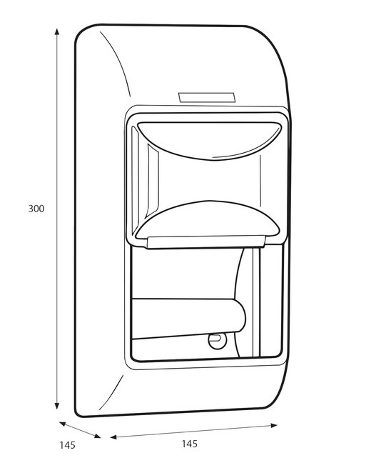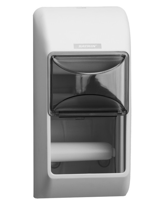 * Katrin toiletpapierdispenser voor 2 standaard rollen papier. * Praktische dispenser voor conventionele toiletrollen. * Geschikt voor 2 toiletrollen (inclusief luxe kwaliteitsrollen van 115 mm). * Gemaakt van ABS-kunststof Robuust en betrouwbaar. * Het inspectievenster geeft aan wanneer het tijd is om het papier bij te vullen. * Geschikt voor linker- en rechterhoek (omschakelbare rolhouder). * Eenvoudig te laden, installeren en onderhouden. * Afsluitbaar. * Afmetingen 145x300x145mm.