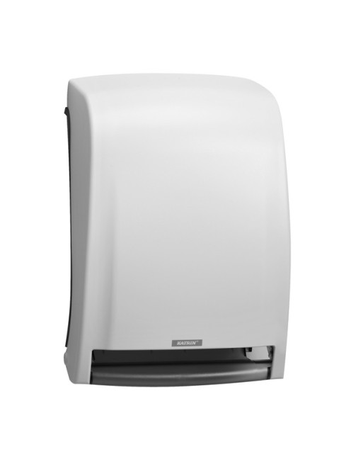 * Katrin System elektrische handdoekdispenser. * Snel en gemakkelijk te gebruiken, altijd een handdoek beschikbaar. * Hoge capaciteit. * 800vellen per rol is genoeg om handen 400-530 keer te drogen. * Ideaal in gebieden met veel verkeer. * Voert automatisch het volgende vel in. * Ontworpen om ervoor te zorgen dat al het papier op de rol wordt gebruikt. * Zeer laag stroomverbruik. * Aangedreven door 4xLR20 1,5 V-batterijen (niet meegeleverd). * Gecontroleerd verbruik voor drukbezochte wasruimtes. * Afmetingen 299x434x234mm.