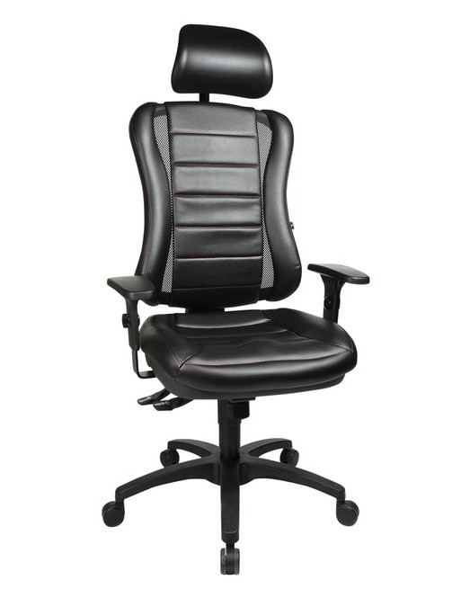 * Sportieve bureastoel met een ergonomisch, contourvormig in hoogte verstelbare rugleunign. * Comfortabele XXL voorgevormde zitting en handige steun voor knieën. * Punt synchroonmechaniek voor synchrone verstelling van de zitting en rugleuning, individueel inregelbaar op basis van het lichaamsgewicht. * Zithoogte verstelbaar door Toplift. * Multifunctionele hoofdsteun, in hoogte en hoek verstelbaar. * In hoogte verstelbare armleuning met softpads. * Modern en solide onderstel voorzien van geremde wielen, geschikt voor een zachte ondervloer. * Ideaal voor het thuiswerken.