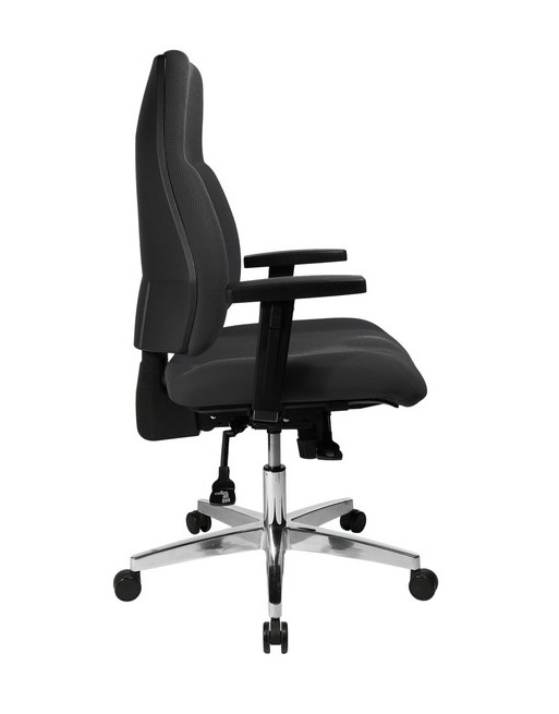 * Professionele draaistoel met hoge rugleuning, inclusief puntsynchronisatie, spanning individueel instelbaar op het lichaamsgewicht en vergrendelbaar in verschillende posities. * Extra grote, comfortabele voorgevormde zitting, inclusief zitdiepteverstelling. * In hoogte en breedte verstelbare armleuning "G3", verchroomd. * Hoge voorgevormde rugleuning met sierlijst voor wervelkolom, extra dik gestoffeerd, in hoogte verstelbaar in diverse standen via UP en DOWN systeem. * Zithoogte in diverse standen verstelbaar door Toplift (LGA gekeurd) * Extra groot geolied aluminium onderstel met geremde dubbel-wielige veiligheidswielen geschikt voor tapijt. *Ideaal voor het thuiswerken.