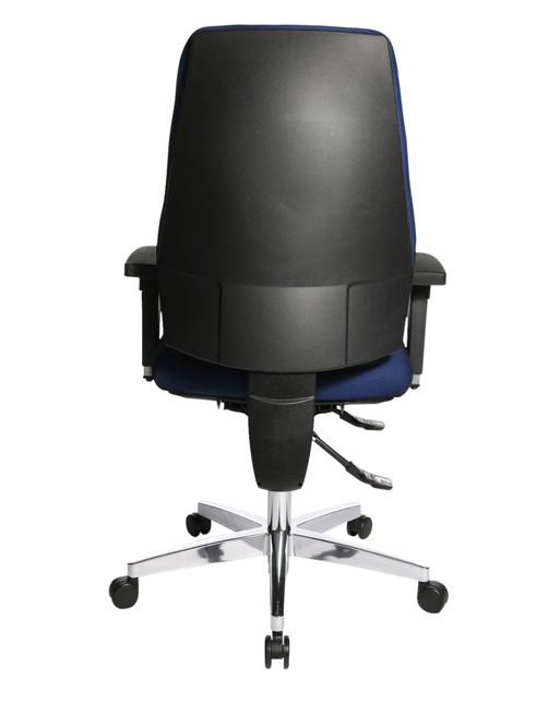 * Professionele draaistoel met hoge rugleuning, inclusief puntsynchronisatie, spanning individueel instelbaar op het lichaamsgewicht en vergrendelbaar in verschillende posities. * Extra grote, comfortabele voorgevormde zitting, inclusief zitdiepteverstelling. * In hoogte en breedte verstelbare armleuning "G3", verchroomd. * Hoge voorgevormde rugleuning met sierlijst voor wervelkolom, extra dik gestoffeerd, in hoogte verstelbaar in diverse standen via UP en DOWN systeem. * Zithoogte in diverse standen verstelbaar door Toplift (LGA gekeurd) * Extra groot geolied aluminium onderstel met geremde dubbel-wielige veiligheidswielen geschikt voor tapijt. *Ideaal voor het thuiswerken.* Materiaal zitting: 100% polyester. * Dit artikel dient nog gemonteerd te worden.