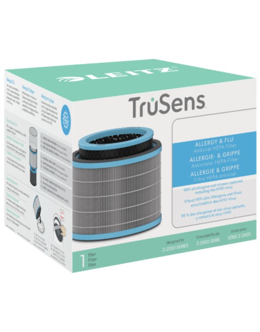 * Bescherm het hele jaar door jouw gezin tegen griep en allergieën met dit alles-in-één filtersysteem voor luchtzuivering. * Dit combinatiefilter heeft 3 filtratieniveaus ter bescherming tegen griepvirussen en verontreinigende stoffen in de lucht; een duurzaam gaasvoorfilter, een antiviraal HEPA-filter en een actief koolstoffilter met koolstofkorrels. * Het filter vormt de kern van het zuiveren van jouw lucht, aangezien het 99,97% van de allergenen en virussen uit de lucht vangt, waaronder het H1N1-virus. * Om ervoor te zorgen dat de luchtreiniger optimaal blijft presteren, wordt aanbevolen om het HEPA-filter elke 12 maanden te vervangen (afhankelijk van het gebruik). * Compatibel met de Leitz TruSens Z-2000 Middelgrote Luchtreinigers. * HEPA-filter met antivirale coating heeft een efficiëntieniveau van 99,97% bij 0,3 micron. * 360 graden filtratie zuigt lucht vanuit alle richtingen waarbij vervuilende stoffen worden verzameld vanuit de hele ruimte. * Het rode signaleringslampje op de luchtreiniger gaat branden wanneer de filters moeten worden vervangen. * Voor het beste resultaat wordt aanbevolen om het HEPA-filter voor Allergie en Griep elke 12 maanden te vervangen (afhankelijk van het gebruik). * 18.65 x 13.8 cm. * Gebruiken met Z-2000 Luchtreiniger. * Werkt het beste voor allergieën en griep. * Verpakking bevat: 1 x gaasvoorfilter, 1 x HEPA-filter, 1 x koolstoffilter. * Alleen gaasvoorfilter, schoonvegen.