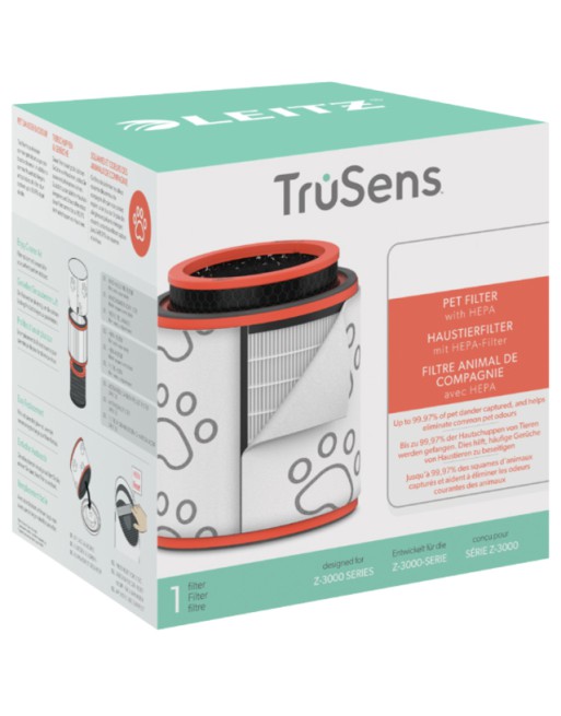 * Adem schonere lucht in met een filter dat huidschilfers en geurtjes van huisdieren helpt elimineren. * Dit combinatiefilter heeft 3 filtratieniveaus die speciaal zijn samengesteld om geurtjes van huisdieren, huidschilfers, haren van huisdieren en stof te bestrijden. * Het alles-in-één filtersysteem combineert een wasbaar voorfilter, een HEPA-filter en een 2-laags koolstoffilter. * Naast veel voorkomende allergenen en verontreinigende stoffen in het huishouden, vangt deze filter 99,97% van de huidschilfers van huisdieren op. * Het filter vormt de kern van het zuiveren van jouw lucht. * Om ervoor te zorgen dat jouw luchtreiniger optimaal blijft presteren, wordt aanbevolen om het HEPA-filter elke 12 maanden te vervangen (afhankelijk van het gebruik). * Compatibel met de Leitz TruSens Z-3000 Grote Luchtreinigers. * HEPA-filter met wasbaar voorfilter heeft een efficiëntieniveau van 99,97% bij 0,3 micron. * 360 graden filtratie zuigt lucht vanuit alle richtingen waarbij vervuilende stoffen worden verzameld vanuit de hele ruimte. * Het rode signaleringslampje op de luchtreiniger gaat branden wanneer de filters moeten worden vervangen. * Voor het beste resultaat wordt aanbevolen om het HEPA-filter voor Huisdieren elke 12 maanden te vervangen (afhankelijk van het gebruik). * 20.87 x 21.2 cm. * Gebruiken met Z-3000 Luchtreiniger. * Werkt het beste voor huidschilfers en geuren van huisdieren. * Verpakking bevat: 1 x wasbaar voorfilter, 1 x HEPA-filter, 1 x koolstoffilter. * Alleen wasbaar voorfilter, met koud water schoonmaken.