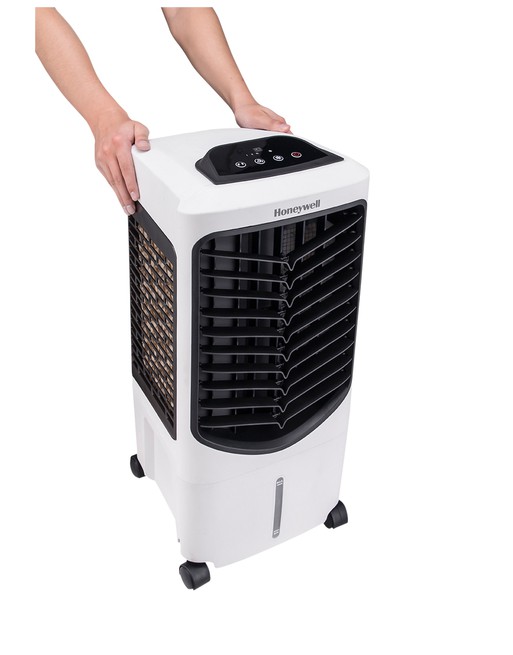 * De Honeywell TC09PCEW is een luchtkoeler die werkt op basis van verdamping. * Warme droge lucht wordt aangezogen en door het koele water in het apparaat afgekoeld en bevochtigd. * Deze luchtkoeler beschikt over 3 standen en heeft een maximaal vermogen van 55 watt. * Voorzien van handige afstandsbediening en LED touch paneel. * Watertankcapaciteit: 9,2 liter. * Voorzien van automatische uitschakel timer. * Gewicht– 6,8kg. * Afmetingen: 30x28x66cm.