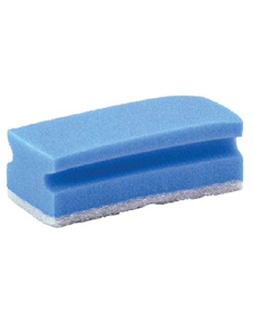 * Schuurspons met handgreep. * Voorzien van wit schuurvlak voor het reinigen van krasgevoelige oppervlakken. * 140 x70 x 42 mm. * Blauw/wit. * 5 stuks.