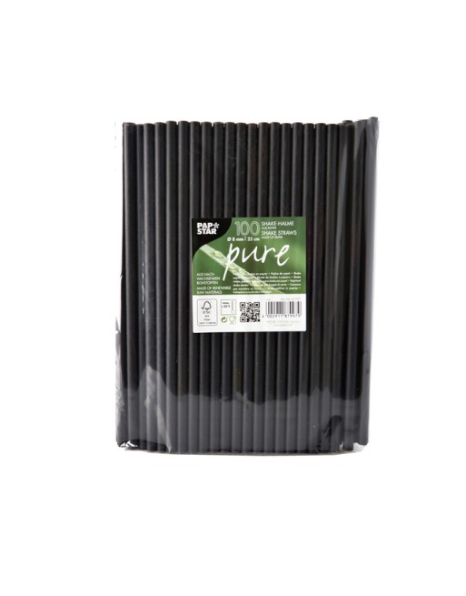 * Zwarte papieren shake rietjes met een lengte van 25 cm en een diameter van 8 mm.