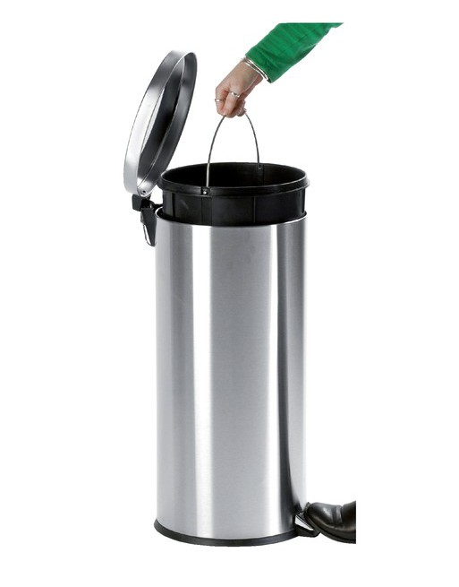 * Ronde pedaalemmer met kunststof binnenemmer. * Mat roestvrijstaal. * Leverbaar als kleine pedaalemmer van 3 liter voor op het toilet tot een grootte van 30 liter voor in de keuken. * Ø167mm, Afmetingen 195x170x270mm. 1 stuk