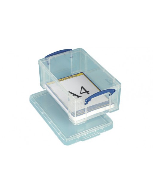 * Really Useful opbergboxen zijn stapelbaar met of zonder deksel. * Ze zijn zo sterk dat het het gewicht van één persoon houdt. * Elk product is bestendig tegen temperaturen van -15°C tot +80°C. * Minimale zijkant aanpassingen om opbergruimte te maximaliseren, dit zorgt tevens ook dat de inhoud minder kan bewegen tijdens transport. * Volledig platte en versterkte bodem. * Het sluitmechanisme houdt de doos en het deksel tezamen. * De doorzichtige doos heeft het voordeel dat u steeds de inhoud ziet. * De verschillende afmetingen zijn onderling opstapelbaar. * Perfect voor het bewaren van A4 papier. * Kan tot 2½ pak A4 papier of 1250 bladen van 80g/m2 opbergen of 20 DVD's. * Tevens ook goed voor het opbergen van schoenen/tijdschriften, labels, etc. 1 stuk