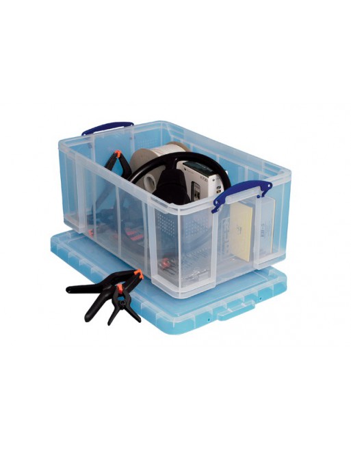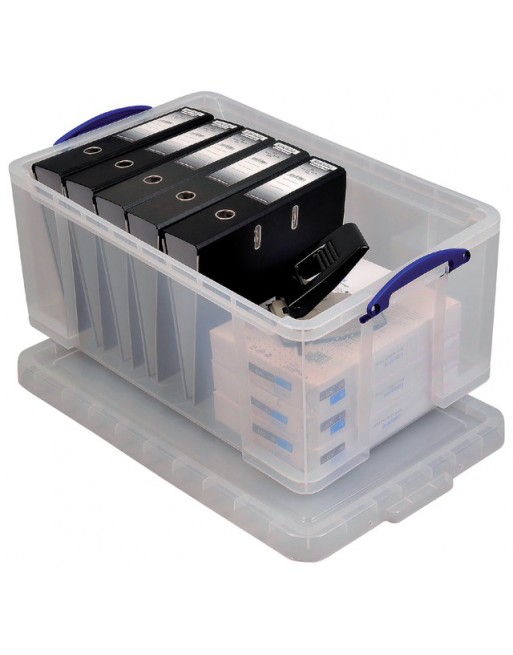 * Really Useful opbergboxen zijn stapelbaar met of zonder deksel. * Ze zijn zo sterk dat het het gewicht van één persoon houdt. * Elk product is bestendig tegen temperaturen van -15°C tot +80°C. * Minimale zijkant aanpassingen om opbergruimte te maximaliseren, dit zorgt tevens ook dat de inhoud minder kan bewegen tijdens transport. * Volledig platte en versterkte bodem. * Het sluitmechanisme houdt de doos en het deksel tezamen. * De doorzichtige doos heeft het voordeel dat u steeds de inhoud ziet. * De verschillende afmetingen zijn onderling opstapelbaar. * Kan maximaal 7 A4 ordners of +/-65 Folio hangmappen bergen. 1 stuk