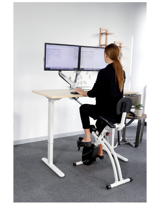 * Werk achter je computer en blijf fit met de ErgodeskBike. * Verbrand extra calorieën terwijl je werkt. * De bureaufiets stimuleert de doorbloeding, dit zorgt voor een hogere productiviteit en het voorkomt vermoeidheid. * Dynamisch werken werkt preventief voor lichamelijke klachten ten gevolge van zittend werken. * Met In hoogte verstelbaar ergonomisch zitkussen. * Geluidloos spinwiel (2,5kg). * LCD-scherm met tijd, snelheid, afstand, calorieën en hartslag. * Instelbare tegendruk. * Gemakkelijk te verplaatsen, daardoor ideaal te combineren met Zit-Sta werkplek. 1 stuk