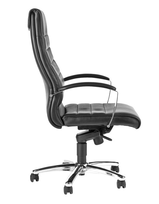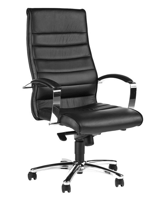 * Bureaustoel met stalen voetkruis. * Gaslift zwart. * In hoogte verstelbare zitting. * Leuning verstelbaar in verschillende posities. * Standaard worden bureaustoelen geleverd met harde wielen. * Rugbreedte 50cm en rughoogte 70cm. * Zitbreedte 50cm en zitdiepte 48cm. * Zithoogte 42-51cm. * Materiaal/stof: 100% leder, achterkant rugleuning kunstleder.