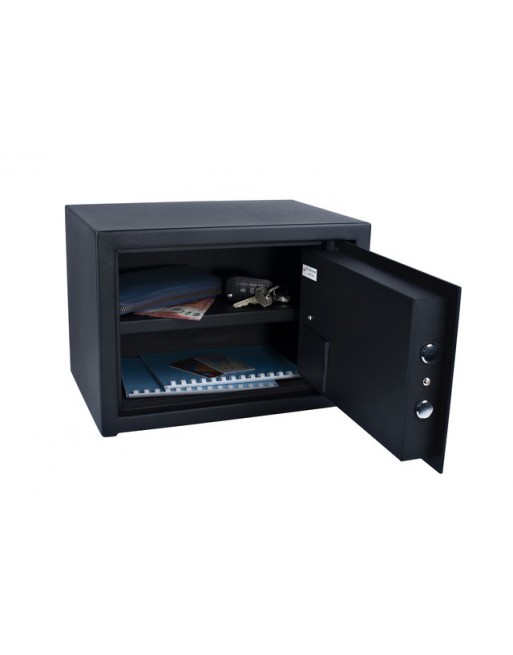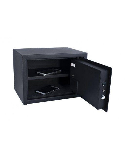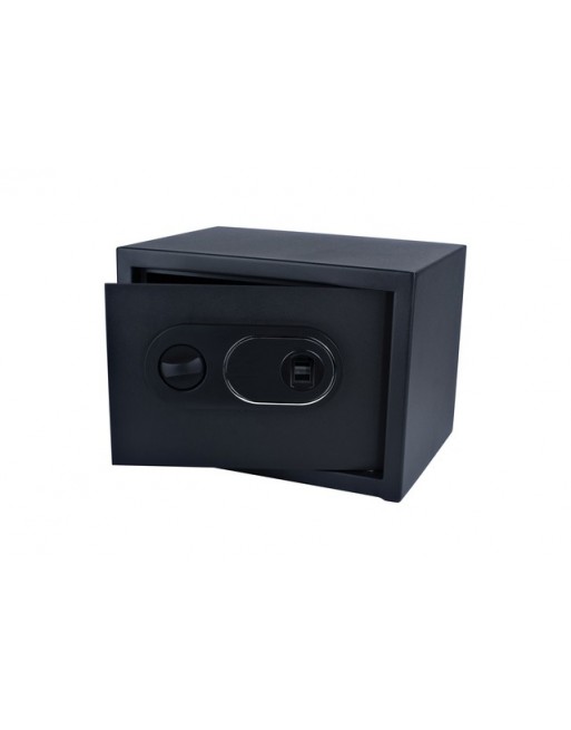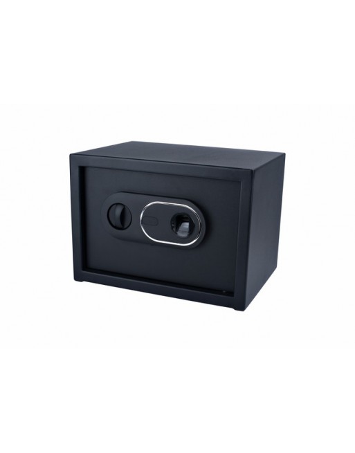 * De Pavo elektronische fingerprint kluis is ideaal voor persoonlijk gebruik of voor op kantoor. * 2 stalen bouten (dubbele bout vergrendeling) garanderen de veilige sluiting van de stalen deur. * De elektronische fingerprintslot is eenvoudig te programmeren met een persoonlijke vingerafdruk scan. * Te programeren tot 100 verschillende gebruikers. * Indien bijvoorbeeld de batterijen leeg zijn, kan de kluis worden geopend met de bijgeleverde noodsleutel. * De kluis kan voor de veiligheid gemonteerd worden tegen de muur of op de grond. * Specificaties: * Afmetingen kluis: 350 x 250 x 250 mm – ca. 16 L. * Binnen maten (dxhxb): 225x240x340mm. * Dubbelwandige deurdikte van 4 mm dik en bodydikte van 2 mm. * Incl. 2x noodsleutels en bevestigingsmateriaal. * Excl. 4 x AA batterijen. * Materiaal: staal.