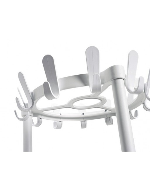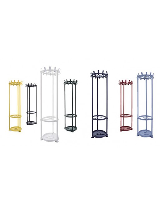 * De kapstokken uit de Krok familie blinken uit in eenvoud. * Ontwerpers Mia Lagerman & Ehlén Johansson hebben het design teruggebracht naar de essentie. * Zoals de open garderobestandaard Krok Round. Een solide, maar toch gestroomlijnd ontwerp met 12 dubbele haken van kunststof. * De kroon, parapluhouder en voet van gegoten aluminium zijn afgewerkt met structuurlak. * Verkrijgbaar in zeven kleuren. * Met 24 haken. * Afmetingen Ø47cm, hoogte 173cm. 1 stuk