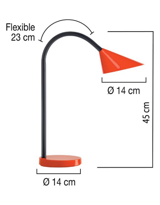 * Bureaulamp met energiezuinige led-lampen. * Combineert eenvoud en moderniteit. * Bovenste deel van de arm is flexibel. * De vorm van de lampenkap zorgt voor een goede lichtverspreiding op de werkplek. * Armlengte 550mm. * Hoogte 450mm. * Voet Ø140mm. * Lampkop 140mm. * Led 4W. * Licht 500 Lumen. * 3000K warmwit. * Brandduur 20.000uur. * Kabellengte 2m. * Energielabel A+.