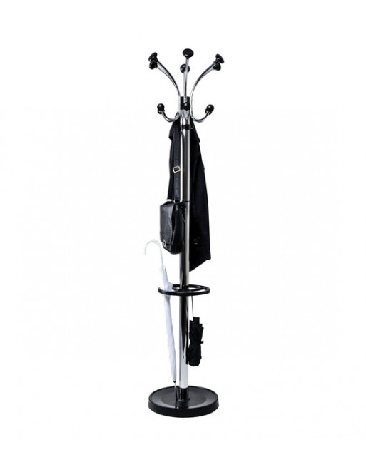 * Stevig en elegant: zuilen en haken in glanzende metallic look. * Extreem stabiel: zware betonvoet met kunststof afdekking en vilten vloerbescherming. * MAUL-design: glanzende voet met mat geërodeerde plekken, krasbestending tegen paraplupunten. * Bijzonder geschikt voor representatieve plekken, bijvoorbeeld cafés, foyers en wachtruimtes. * Veilig: afgeronde kunststof knoppen sparen de kleding. * Zuil Ø 5 cm. * 6 mutshaken en 6 jashaken van metaal, 4 extra haken van kunststof aan de zuil en aan de paraplubak. * Kunststof knoppen: mutshaken Ø 5,5 cm, jashaken Ø 3,8 cm, van onbreekbaar ABS. * Draaibare kroon, Ø 41 cm, voor gemakkelijke toegang aan alle kanten. * Inclusief parapluhouder, Ø 27 cm, voor maximaal 8 paraplu's en 4 zakparaplu's. * Voet Ø 36,5 cm, gewicht 6 kg. * Eenvoudige montage.