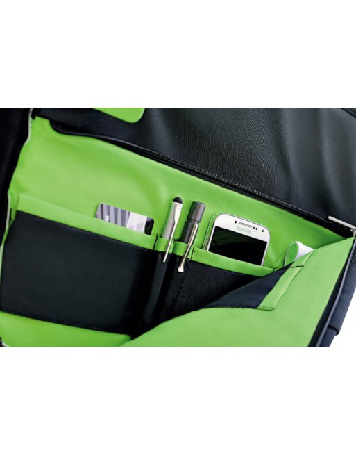 * Kwaliteit lichtgewicht en compacte zakelijke tas met 1 hoofdcompartiment en een kleiner voorvak. * Opvallend en elegant design met rits en elegante matte metalen gespen. * Makkelijk te dragen dankzij verstelbare schouderriem. * Lichtgewicht, robuust polyester voor comfortabel dagelijks gebruik. * Voorste compartiment voorziet snelle toegang tot je smartphone, paspoort, pennen en visitekaartjes. * 10 vakken, inclusief snelle toegang tot het voorvak voor het reinigingsdoekje. * Inclusief sleutelhouder. * Handige doorkijkvakken van gaas voor kabels en kleine accessoires. * Tabletvak is gestoffeerd met fleece om je scherm en andere oppervlakken van je apparaten te beschermen.
