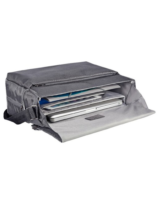 * Kwaliteit lichtgewicht zakelijke messengertas met 1 hoofdcompartiment en een kleiner voorvak. * Opvallend en elegant design met rits en matte metalen gespen. * Makkelijk te dragen dankzij lederen handvat, verstelbare schouderriem of te bevestigen aan uw trolley. * Lichtgewicht, robuust polyester voor comfortabel dagelijks gebruik. * Voorste compartiment voorziet snelle toegang tot je smartphone, paspoort, pennen en visitekaartjes. * 19 vakken, inclusief zijvak voor flesjes of een paraplu. * Inclusief reinigingsdoekje en sleutelhouder. * Apart uitneembaar tasje voor de oplader en kabels. * Handige doorkijkvakken van gaas voor kabels en kleine accessoires. * Tablet en ultrabook vak gestoffeerd met fleece om je scherm en andere oppervlakken van je apparaten te beschermen. * Geheim vak voor telefoon aan de achterzijde voor gemakkelijke aansluiting met oordopjes.
