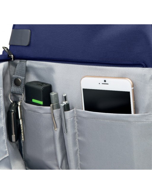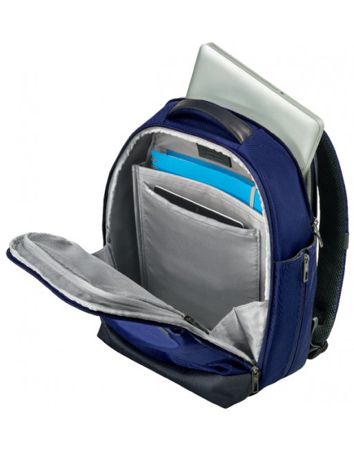 * Compact en gemakkelijk om te dragen. Kwalitatief lichtgewicht, ruime zakelijke rugzak met twee hoofdcompartimenten en een kleiner voorvak. * Opvallend en elegant design met mat metalen ritsen. * Draag de rugzak met de echte lederen handvaten of de verstelbare schouderriemen, of bevestig het aan uw trolley. * Perfect voor woon-werkverkeer. * Lichtgewicht, waterafstotend, robuust polyester voor comfortabel dagelijks gebruik. * Geventileerd rugsysteem, 15 vakken, inclusief zijvak voor flesjes of een paraplu. * Snelle toegang tot het voorvak voor je telefoon, paspoort, pennen of visitekaartjes. * Inclusief reinigingsdoekje en sleutelhouder. * Apart uitneembaar tasje voor de oplader en kabels. * Handige doorkijkvakken van gaas voor kabels en kleine accessoires. * Tablet en ultrabook vak gestoffeerd met fleece om je scherm en andere oppervlakken van je apparaten te beschermen. * Max. laptop omvang: 330 x 250 x 25 mm (b x l x h). * Hoes voor telefoon aan de voorkant voor eenvoudige aansluiting met oordopjes. * Met fleece gevoerd vak voor 10" Tablet of E-Reader.