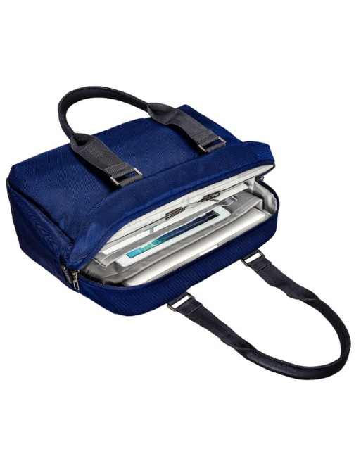 * Kwaliteit lichtgewicht en ruime zakelijke tas met een hoofdcompartiment en een kleiner voorvak. * Opvallend en elegant design met rits en elegante metalen matte gespen. * Makkelijk te dragen dankzij lederen schouderriemen of te bevestigen aan uw trolley. * Lichtgewicht, robuust polyester voor comfortabel dagelijks gebruik. * Voorste compartiment voorziet snelle toegang tot je smartphone, paspoort, pennen en visitekaartjes - 19 vakken, inclusief snelle toegang tot het voorste compartiment voor je mini tablet of ebook reader. * Inclusief reinigingsdoekje, sleutelhouder en uitneembaar tasje voor de oplader en kabels. * Afneembare en verstelbare schouderriem. * Handige doorkijkvakken van gaas voor kabels en kleine accessoires. * Tablet en ultrabook vak gestoffeerd met fleece om je scherm en andere oppervlakken van je apparaten te beschermen. * Geheim vak voor telefoon aan de achterzijde voor gemakkelijke aansluiting met oordopjes.