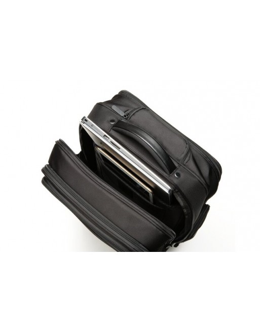 * Comfortabel, veilig, stijlvol, duurzaam en met een afzonderlijk kledingcompartiment. * De ideale rolkoffer met vier wielen voor overnachtingen past perfect bij de professional die veel onderweg is. * Drukbestendige, afsluitbare rits beveiligt uw waardevolle bezittingen tegen binnendringing. * De wieltjes kunnen meerdere kanten opdraaien en zorgen ervoor dat de rolkoffer gemakkelijk is te manoeuvreren. * Laptopcompartiment met valbeschermng voegt een extra laag interne beveiliging toe tussen het laptopcompartiment en de basis van de rolkoffer. * Het duurzame, waterafstotende materiaal is gemaakt van stevig en bestendig 1680D ballistisch polyester dat de inhoud beschermt en droog houdt. * Het flexibele compartiment biedt voldoende ruimte voor kleding, papieren en meer, maar is compact genoeg om aan de meeste richtlijnen voor handbagage te voldoen en gemakkelijk op te bergen. * De richtlijnen voor handbagage verschillen per luchtvaartmaatschappij. * Informeer bij uw luchtvaartmaatschappij voor meer details. * De uitschuifbare handgreep met dubbele trekstang is stevig wanneer dat nodig is en uit de weg als u het niet nodig hebt. * De gevoerde handgreep zorgt voor een extra comfortabele draagoptie. * De snel toegankelijke opbergvakken bieden op overzichtelijke wijze plaats aan uw opladers, pennen, visitekaartjes en meer. * Het hoofdvak met ritssluiting biedt een gemakkelijke toegang tot de belangrijkste inhoud.
