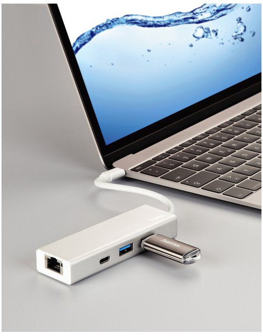 * Gebruik deze Hama USB 3.1 - Type-C-hub voor het aansluiten van een pc/laptop/MacBook/tablet met USB-C op het internet/netwerk over LAN (RJ-45). * Je kan hem ook gebruiken voor het gelijktijdig aansluiten van max. 3 andere USB-apparaten. * Grote afstand tussen de aansluitingen voor het probleemloos aansluiten van brede USB-stekkers/-dongles. * Ethernet-gegevensoverdrachtssnelheid van max. 1000 Mbit/s. * Super-speed gegevensoverdrachtsnelheid tot 5 Gbps. * Elegant en robuust aluminium oppervlak. 1 stuk