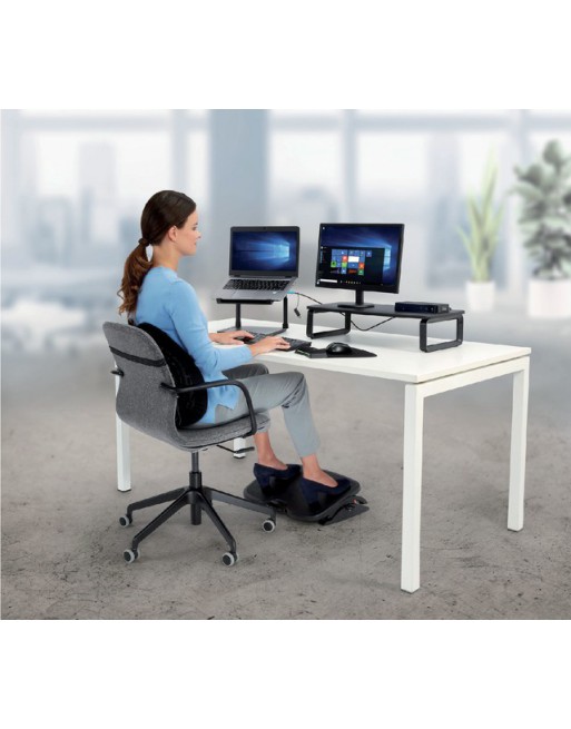 * Wanneer u uw laptop op oogniveau wilt hebben, is er geen betere ergonomische oplossing dan de SmartFit-laptopverhoger. * De montage neemt geen ruimte in beslag, zodat u een compatibele, universele Kensington-dock onder het laptopplateau kunt bevestigen, waardoor u uw bureau netjes houdt. * 4 beschikbare hoogtestanden. * Kabelbeheer onder het laptopplateau zorgt ervoor dat kabels netjes weggewerkt zijn. * Antislipmatten zorgen ervoor dat de laptop stevig op zijn plaats blijft zitten. * Compatibel met laptops tot 15,6inch en 3,5kg.
