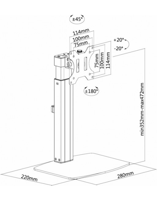 * Met deze monitorsteun plaatst u een flatscreen op het bureau via een bureauvoet. * Door gebruik te maken van een monitorsteun profiteert u optimaal van de mogelijkheden van uw monitor. * De monitorsteun is eenvoudig in hoogte te verstellen van 35 naar 47 cm. * Tevens kunt u het scherm kantelen, zwenken en roteren. * Hierdoor creëert u de ideale ergonomische werkhouding. * Dit verkleint de kans op nek- en rugklachten. * De standaard heeft 1 draaipunt en is geschikt voor schermen t/m 32" (81 cm). * Het draagvermogen van de arm is 7 kg. * Dit product is geschikt voor schermen met een VESA gatenpatroon van 75x75 mm of 100x100 mm.