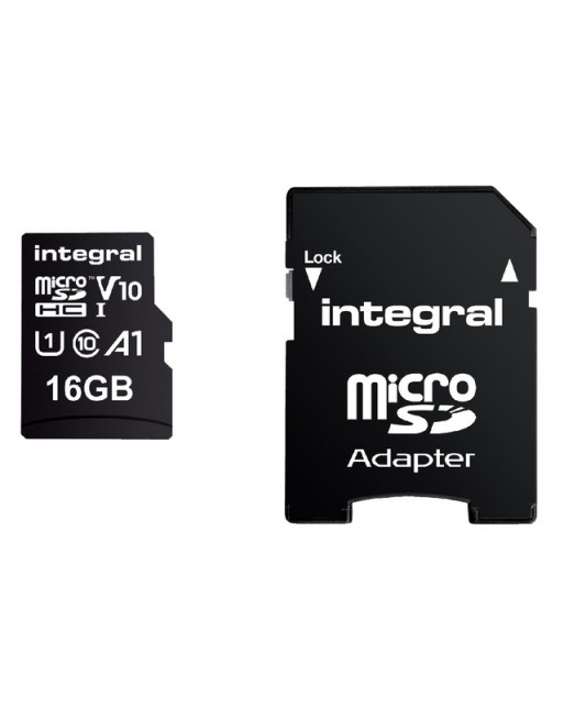 * Integral High Speed microSDHC klasse 10 geheugenkaarten zijn ideaal voor gebruik in smartphone's, tablet-PC's, digitale camera's en Full HD camcorders. * Werkt perfect met de nieuwste High Definition digitale camcorders en smartphones. * Zorgen voor vloeiende video opname, zelfs bij Full HD en 4K.in digitale SLR camera's. * Sla meer apps, foto's, muziek, games en video op uw tablet-PC en smartphone op dan ooit tevoren! * Inclusief SD-adapter. * Transfersnelheid tot 100Mb/seconde. * Video snelheidsklasse V10. * 5 jaar garantie. 1 blister x 1 stuk