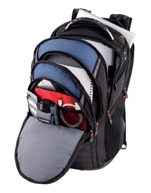 * De rugtas is geschikt voor de meeste 17” notebooks breed scherm. * Swissguard-computer vak. * Achterzijde opgevuld met luchtkussentjes. * Schok werende schouderriemen. * Quick Pocket TM. Vak voor iPod / MP3-speler. * Opberg vak voor accessoires. * Stabiliserend platform voor onderzijde van de tas. * Productmateriaal: polyester. * Afmetingen (BxHxD): 38x48x10,2cm. * Productgewicht: 1,7kg. * Capaciteit: 25liter. 1 stuk