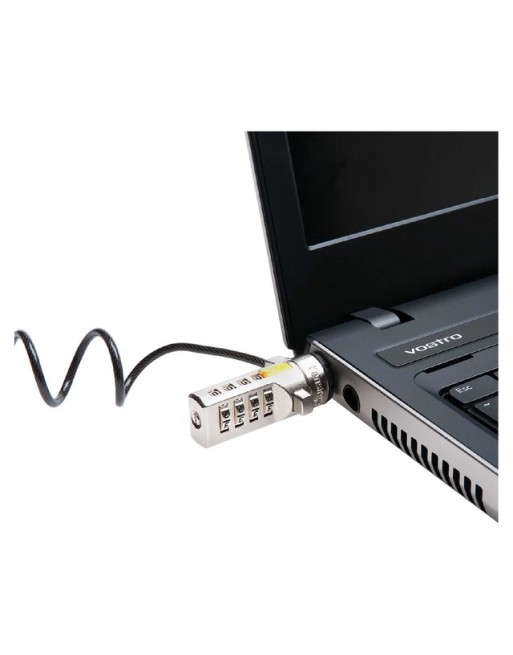 * Bescherm uw laptop en persoonlijke informatie onderweg met het Kensington Portable Combination-laptopslot. * De drukknop kan met één hand worden bediend voor gemakkelijke installatie terwijl de Kensington T-bar het slot van uw laptop beveiligt. * De zichzelf oprollende kabel kan tot 6 inches worden uitgerekt om te worden verankerd aan een bureau of vaste structuur, terwijl deze opgerold slechts 3 inches lang is en gemakkelijk kan worden meegenomen. * Slot met combinatie van 4 wieltjes zonder sleutel. 1 stuk