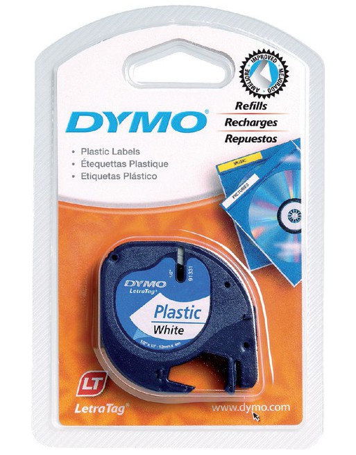 * De Dymo LetraTag tape. * Speciaal gemaakt is voor uw Dymo LetraTag labelmaker. * Verpakt in eenvoudig te laden tapecassettes en beschikt over een simpel te verwijderen achterstrip voor voor het probleemloos aanbrengen van labels. * Plastic lettertape. * Scheurbestendige en afwasbaar voor binnenshuis. * Met een 12mm brede tape kunt u zeer duidelijke belettering aanbrengen. * De 12mm tape is de meest gebruikte tape en daarmee geschikt voor alle normale beletteringstaken. * Hou rekening met de marges die langs de randen van de tape nodig zijn voor de printer, de tekstgrootte zal maximaal 9mm zijn. * De bandlengte is 4m. * De kleur van de tape is wit en de opdruk is zwart. 1 stuk