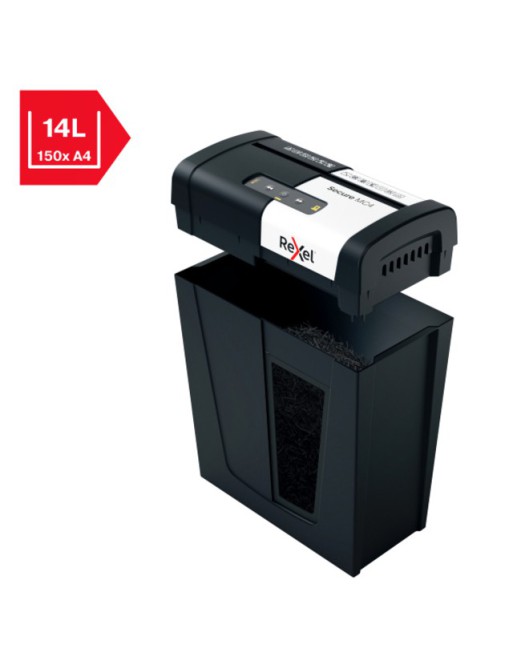 * Papiervernietiger met handmatige invoer. * Vernietigt tot 4 A4-vellen (80gr) per keer. * Veiligheidsniveau: DIN P5. * Microsnippers 2x15mm. * Hoge veiligheid door fijnere papierdeeltjes; minder vaak legen van de opvangbak. * Opvangbak van 14 liter (150 A4-vellen) met verwijderbare deksel. * Transparant kijkvenster geeft aan hoe vol de opvangbak zit. * Whisper-Shred functie met een laag geluidsniveau <60 dBA. * Vernietigt nietjes en paperclips. * Continue doorlooptijd van 6 minuten. * Aanraakbediening met handmatige en automatische vooruit/terugloopfunctie. * LED-waarschuwingslampje voor oververhitting. * LED-waarschuwingslampje geeft aan als er teveel papier is geplaatst. * 2 jaar garantie, 2 jaar garantie op de messen.