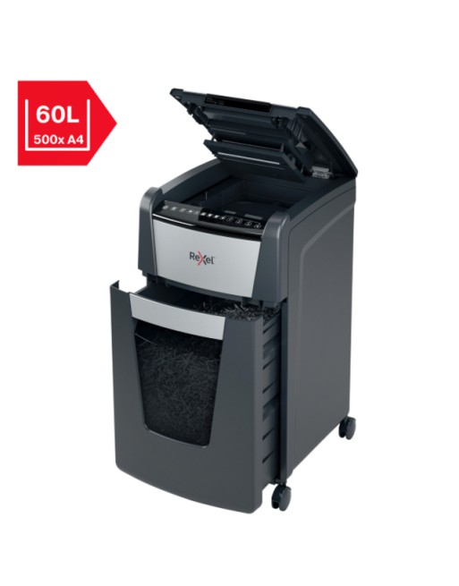 * Papiervernietiger met automatische invoerfunctie voor maximaal 300 A4 vellen (80gr) tegelijkertijd. * Versnippert tot 10 vellen tegelijkertijd bij handmatige invoer. * P4 cross cut (4x26mm). * Uittrekbare opvangbak van 60 liter. * Onderaan zijn er wieltjes voorzien, zo kan je de papiervernietiger makkelijk verplaatsen op jouw werkplek. * Anti-vastloop technologie. * Vernietigt creditcards, nietjes en paperclips. * 60 minuten continue werkduur met ventilatorkoeling. * Sluimerstand na 3 minuten inactiviteit. * Simpele touch bedieningstoetsen voor een eenvoudige bediening. * Papiervernietiger kan worden vergrendeld als er geen toezicht is. * Fluisterstille werking 55 dB(A). * Indicatielampje 'bak vol'. * 2 jaar garantie, 2 jaar garantie op snijmessen.