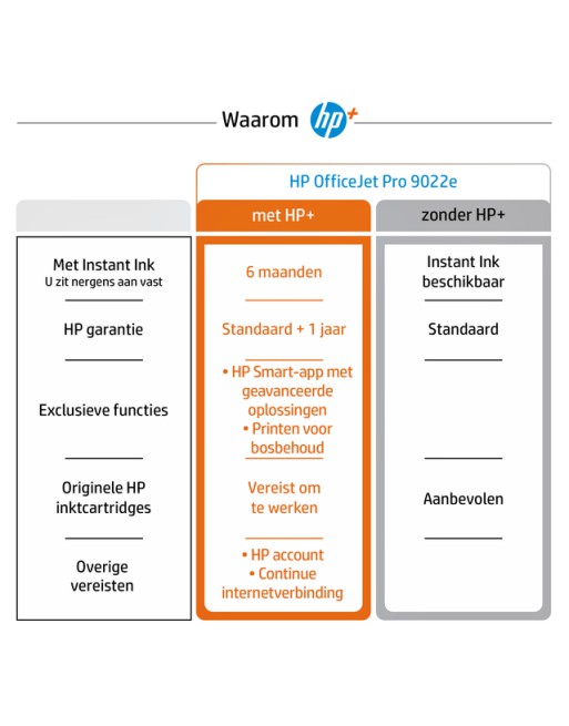 * Vertrouw op hoge printsnelheden tot 22 ppm, automatische dubbelzijdig printen, betrouwbare Wi-Fi®-connectiviteit en een papierlade voor 250 vellen. * All-In-One kleurenprinter - Perfect voor thuiskantoor, midden- en kleinbedrijf. * Printen, kopiëren, scannen, faxen met eenvoudig tikken en swipen op het kleurentouchscreen. * Direct foto's printen vanaf cameratelefoons met de HP Smart-app. * AirPrint™, Wireless Direct, USB 2.0, Ethernet, draadloos, 11 modempoorten. * HP thermische inkjet 10 x 15 cm. * Scan naar de cloud, uw e-mail en meer met één druk op de knop. * Kopieerresolutie tot 600 DPI. * Afmetingen: 278 x 439 x 343 mm, gewicht 9,29 kg.*Inhoud van de doos: HP OfficeJet Pro 9010e All-in-One-printer, HP 963 zwarte setup-inktcartridge, HP 963 cyaan setupinktcartridge, HP 963 magenta setup-inktcartridge, HP 963 originele gele setup-inktcartridge, Flyer met regelgeving, Flyer met inktwaarschuwingen, Netsnoer, Installatieposter, Naslaggids. * Niet inbegrepen: USB- en telefoonkabel moeten apart worden aangeschaft. * Dit is een printer die HP+ ondersteunt. Kies voor HP+ bij de installatie van het product om de voordelen te activeren. Voor HP+ is een HP account, continue verbinding met het internet en exclusief gebruik van originele HP inktcartridges tijdens de gehele levensduur van de printer vereist. * Disclaimer: Bepaalde HP-printers zijn bestemd om alleen te werken met cartridges die nieuwe of hergebruikte HP-chips of elektronische HP-circuits hebben. Door periodieke firmware-updates wordt de effectiviteit van de dynamische beveiligingsmaatregelen behouden en blokkeren cartridges die eerder wel werkten en dus geen nieuwe of hergebruikte HP chips, of originele elektronische HP-circuits hebben. Cartridges die gebruik maken van hergebruikte HP-chips en elektronische HP-circuits blijven dus mogelijk om te gebruiken.