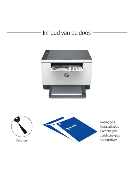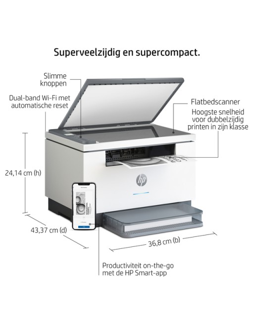 * Een zeer productieve MFP die sneller dubbelzijdig print dan elk ander apparaat in zijn klasse, met automatische documentinvoer en de tijdbesparende HP Smart-app. * Profiteer van de betrouwbare verbindingen en de vereenvoudigde setup. * Printtechnologie: Laser, Zwart-wit. * Apple AirPrint™, HP Smart-app; Mopria™-gecertificeerd, Printen met Wi-Fi® Direct, Hi-Speed USB 2.0, Fast Ethernet, Dual-band (2,4/5,0GHz). * Invoerlade 150 vel, uitvoerlade 100 vel. * Automatisch dubbelzijdig printen, standaard 1 papierlade, A4 formaat. * Afmeting: 242 x 368 x 299 mm, gewicht 7,6 kg. * Inhoud van de doos: HP LaserJet MFP M234dw printer, HP zwarte LaserJet tonercartridge (700 pagina's), Stofklep, Naslaggids, Installatieposter, Garantiegids en flyer in sommige landen, Netsnoer. * Niet inbegrepen: USB-kabel moet apart worden aangeschaft. * Deze printer is ontworpen om alleen te werken met cartridges die een nieuwe of hergebruikte HP-chip hebben. * Met een hergebruikte HP-chip kunt u hergebruikte, gerecyclede en opnieuw gevulde cartridges gebruiken. * Disclaimer: Bepaalde HP-printers zijn bestemd om alleen te werken met cartridges die nieuwe of hergebruikte HP-chips of elektronische HP-circuits hebben. Door periodieke firmware-updates wordt de effectiviteit van de dynamische beveiligingsmaatregelen behouden en blokkeren cartridges die eerder wel werkten en dus geen nieuwe of hergebruikte HP chips, of originele elektronische HP-circuits hebben. Cartridges die gebruik maken van hergebruikte HP-chips en elektronische HP-circuits blijven dus mogelijk om te gebruiken.