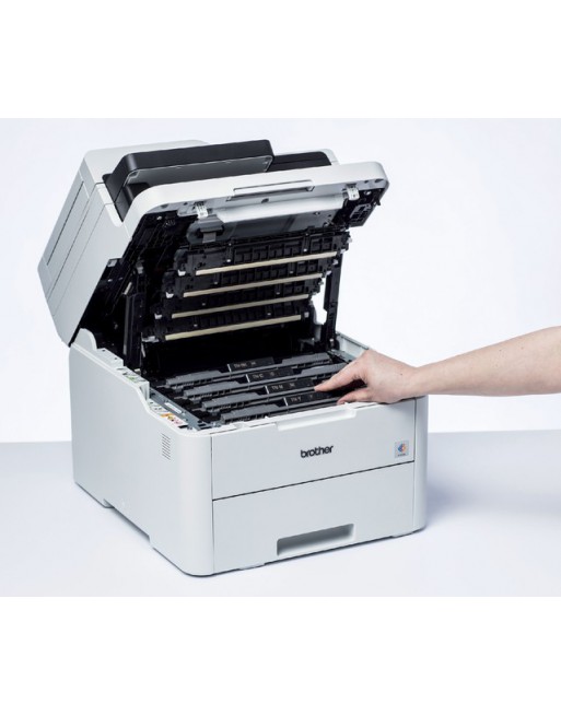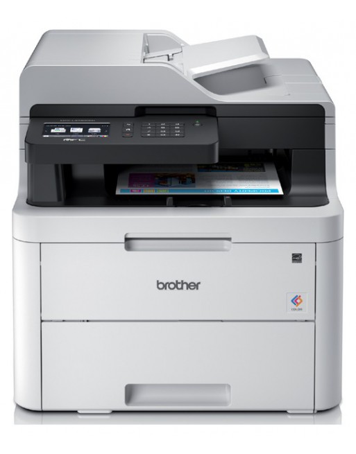 * 4-in-1 kleurenledmultifunctional: printer, copier, scanner en fax. * A4-formaat. * Draadloos, via W-Fi 802.11. * Draadloze netwerkinterface IEEE 802.11b/g/n. * Mobiel printen via Brother iPrint&Scan, Google Cloud Print 2.0, Mopria, Apple Airprint, Brother Apps en Web Connect. * Printsnelheid 18ppm zwart en kleur. * Printresolutie 2400dpi (600x2400). * 512MB geheugen. * Processor Cortex-A9 800MHz. * Printcapaciteit 30.000 pagina's per maand, aanbevolen 300 tot 1.500 pagina's. * Papierlade van 250vel, 1 vel handmatige papierinvoer. * ADF 50 vel. * Hi-Speed USB 2.0. * Printerdrivers: Windows, Macintosh, Linus, PostScript universele printerdriver en PCL Driver. * Kopieersnelheid 24 ppm. * Kopieerresolutie tot 600x600dpi. * Zoombereik 25-400%. * Kleurenscanner met CIS (Contact Image Sensor) technologie. * Scanresolutie 1200x2400dpi. * Scannen van en naar bestand, e-mail, OCR, afbeelding, SharePoint, netwerkmap, FTP. * Scannerdrivers: Windows, Macintosch en Linux. Fax met 250 nummers. * Faxgeheugen tot 500 pagina's. * Software Brother iPrint&Scan en Nuance PaperPort 14SE. * Bedieningspaneel: LCD kleurentouchscreen 9,3 cm. * Afmetingen 410x475x414mm. * Inhoud doos: printer, 4 toners voor 1.000 pagina's en drum. * Met Energy Star keurmerk. 1 stuk