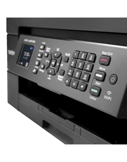 * 4 in 1 Kleureninkjetmultifunctional: Printer, copier, scanner en fax. * A4-formaat. * Draadloos, via WiFi 802.11. * Airprint, Mopria Print Service, Brothers App, Google Cloud Print, Google Drive, OneDrive, Dropbox, OneNote of Evernote, Android Print Service Plugin. * Printsnelheid 12/6ipm (zwart/kleur). * Printresolutie tot 1200x6000dpi. * 128MB geheugen. * Processor 576Mhz. * 4 seperate inktcartridges. * Printen zonder witranden bij enkelzijdig printen. * Papierlade tot 100 vel. * ADF tot 20 vel. * Duplex functie, automatisch dubbelzijdig afdrukken tot A4 formaat. * Hi-speed USB 2.0. * Netwerkklaar (draadloos). * Direct print van USB-stick. * Kopieerresolutie 1200x600dpi. * Kopiëren zonder pc. * Zoombereik 25-400%. * Scannertype CIS. * Scanresolutie 1200x2400dpi. * Scannen van en naar bestand, afbeelding, e-mail, SharePoint, OCR of USB-stick. * Fax snelkiesnummers 40. * Verzend-/ ontvangstgeheugen tot 170 pagina's. * LCD-scherm 4,5cm. * Met Blauwe Engel, Nordic Swan en Energy Star keurmerk. * Printer wordt geleverd met een set Brother inktcartridges LC-3211. * Afmetingen: 400x341x172mm. 1 stuk
