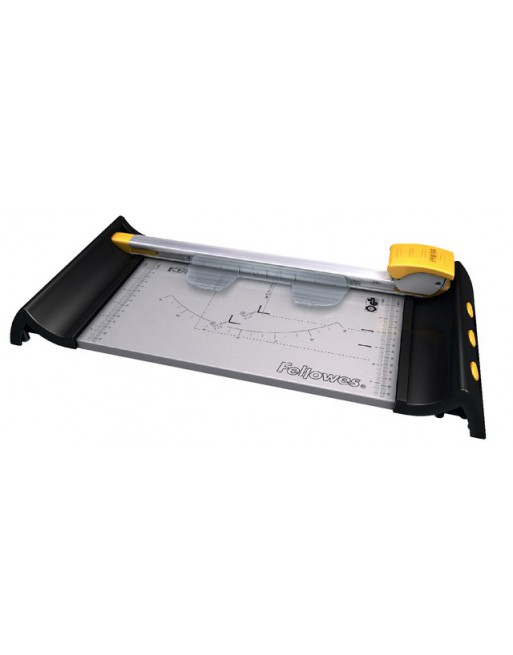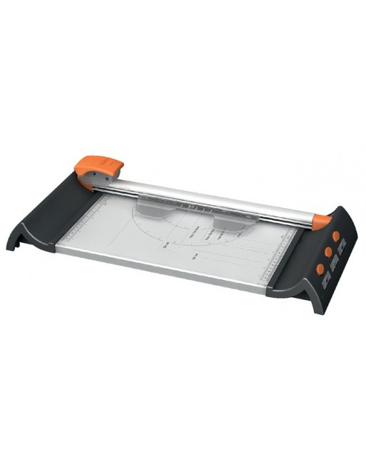 * Rolsnijmachine met SafeCut snijmes cartridge, het mes verschijnt alleen tijdens het snijden voor maximale veiligheid. * Snijdt tot 10vel papier 80gr per keer. * Duurzaam metalen snijoppervlak voor frequent gebruik. * Papierklem minimaliseert papierverschuiving tijdens het snijden. * Geïntegreerde opslag voor SafeCut snijmes cartridges. * Snijlijnen voor verschillende formaat documenten. * Afmetingen 76x478x218mm. 1 stuk