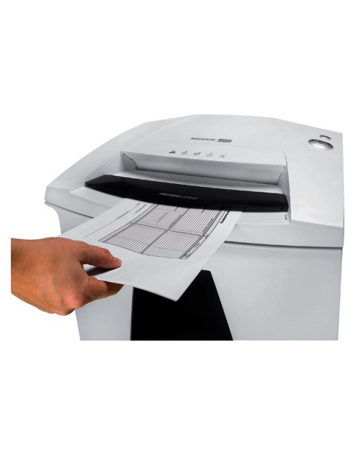 * Verrijdbare papiervernietiger zorgt voor gegevensveiligheid op de werkplek. * Zijn inductiegeharde massief stalen snijwalsen zijn ongevoelig voor nietjes en papierclips en garanderen duurzaamheid. * De krachtige motor garandeert een hoge snijcapaciteit en een betrouwbaar gebruik, ook bij continue belasting. * Een geïntegreerde fotocel start het toestel automatisch bij papierinvoer en schakelt na afloop van de papiertoevoer automatisch weer uit. * De automatische terugloop voorkomt vastgelopen papier. * De uittrekbare herbruikbare opvangzak draagt bij tot de eenvoudige afvalverwijdering van het vernietigde materiaal. * In de stand-bymodus zorgt het energiespaar-managementsysteem EMCS voor een uiterst gering stroomverbruik. * Capaciteit 27vel 80gr papier. * Vernietigt in stroken van 3,9mm. * Grote opvangbak van 100 liter. * Motorvermogen: 590W. * Invoerbreedte 310mm. * Veiligheidsniveau P2. * Lifetime garantie op de volstalen snijwalsen. * Afmetingen 439x541x845mm. 1 stuk