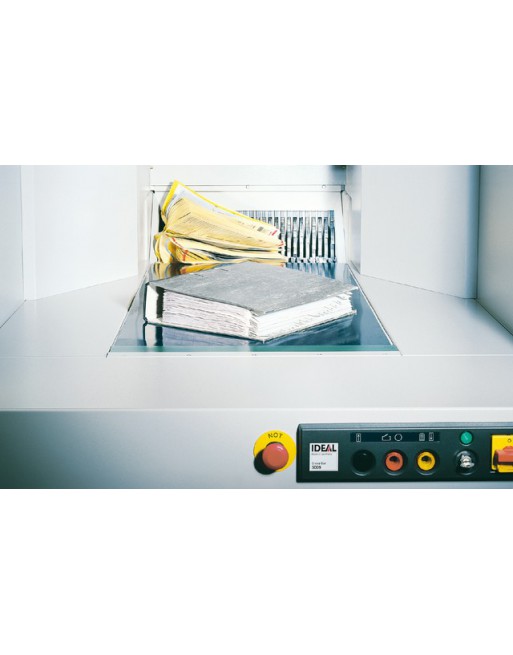 * Papierversnipperaar met een capaciteit van 350vel 80 grams papier. * Invoerbreedte van 500mm. * Grote aanvoertafel met transportband en elektrisch beveiligd hek op het werkgedeelte. * Overzichtelijk bedieningspaneel met drukknoppen voor start/stop/terug. * Veiligheidsslot met sleutel. * Hoofdschakelaar en noodknop. * 2 automatische snelheden. * Elektronische besturing bij papieropstopping. * Automatische terugloop en start. * Automatische uitschakeling bij een volle opvangzak en bij papieropstopping. * Lampjes voor de in bedrijfsstatus. * Afgesloten papieropvangruimte met deuren aan de achterzijde van de machine. * Elektrische deurbeveiliging. * Verrijdbare papieropvangwagen met frame om een plastic zak in te hangen met 300L opvangvolume. * Twee krachtige motoren met samen 9,0kW aandrijving. * Duurzaam snijwerk gemaakt van gehard speciaalstaal. * Centrale oliesmering voor het snijwerk. * Voorzien van wielen. * Veiligheidsklasse P3. * Afmetingen 1714x1036x2170mm. * Gewicht 1130kg. 1 stuk