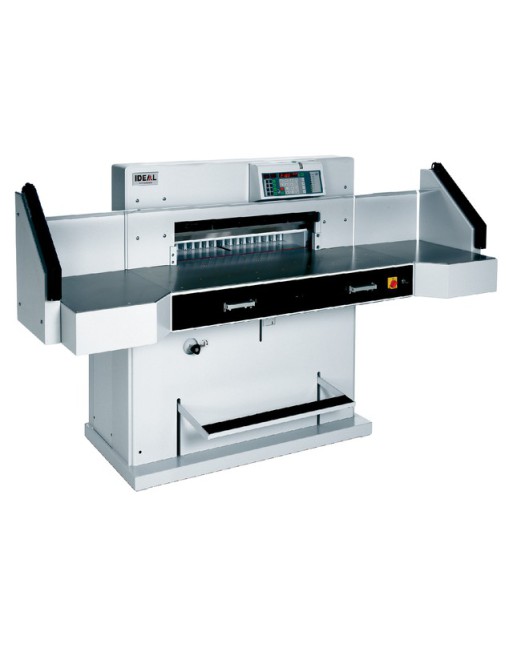 * Professionele stapelsnijmachine met hydraulische aandruk, EASY-CUT snijproces en programma-aansturing voor de elektrische achteraanslag. * SCS veiligheidspakket: met IR-lichtsensor veiligheidsvoorziening op het gehele werkplateau. * Veiligheidsafdekking op de achtertafel; veiligheid door tweehandige bediening, automatische terugloop van mes- en aandrukrail vanuit iedere positie. * Afsluitbare hoofdschakelaar. * 24Volt aansturing. * Mes-wisselvoorziening met beschermd snijgedeelte. * Elektromechanische mesaandrijving. * Hydraulische aandrijving van de aandrukbalk. * Traploos instelbare aandruk met optische aanduiding. * Voetpedaal voor vooraandruk. * Aandrukbalkafdekking met springslot. * Elektromechanische aandrijving van de achteraanslag met professionele aansturingsmodule. * Professionele programma-aansturing met 99 programma's. * Papieruitvoerfunctie (EJECT) met of zonder programma-aansturing. * Druktoets voor snelle zadelinstelling en set-toets voor referentieformaten. * Elektronisch handwiel voor exact instellen van de achteraanslag. * Hoogwaardig HSS-mes uit kwaliteitsstaal. * Optische snijaanduiding met lichtdioden (LED'). * Seriematig met luchttafel (voor- en achtertafel). * Extra bijzettafels tegen meerprijs leverbaar. * Netaansluiting 400V/50Hz fasestroom/1,5 kW. * Afmetingen 1335x1305x1540mm. * Inclusief bijzettafels 2100x1600mm. * Gewicht ca. 588kg. 1 stuk