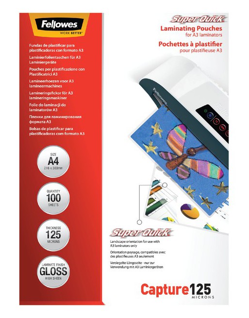 * Tot 40% sneller lamineren. * De lange zijde is gesloten, perfect voor het lamineren van grote volumes. * In verschillende diktes leverbaar. * Biedt bescherming van uw document op geavanceerd niveau. * Ideaal voor certificaten, instructiematerialen, bewegwijzering en veelvuldig gebruikte documenten. * Alleen geschikt voor A3 lamineermachines. 1 pak x 100 stuk